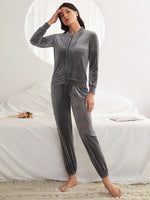 Elegant Plain Zipper Long Sleeve Baseball Collar Women Lounge Sets
