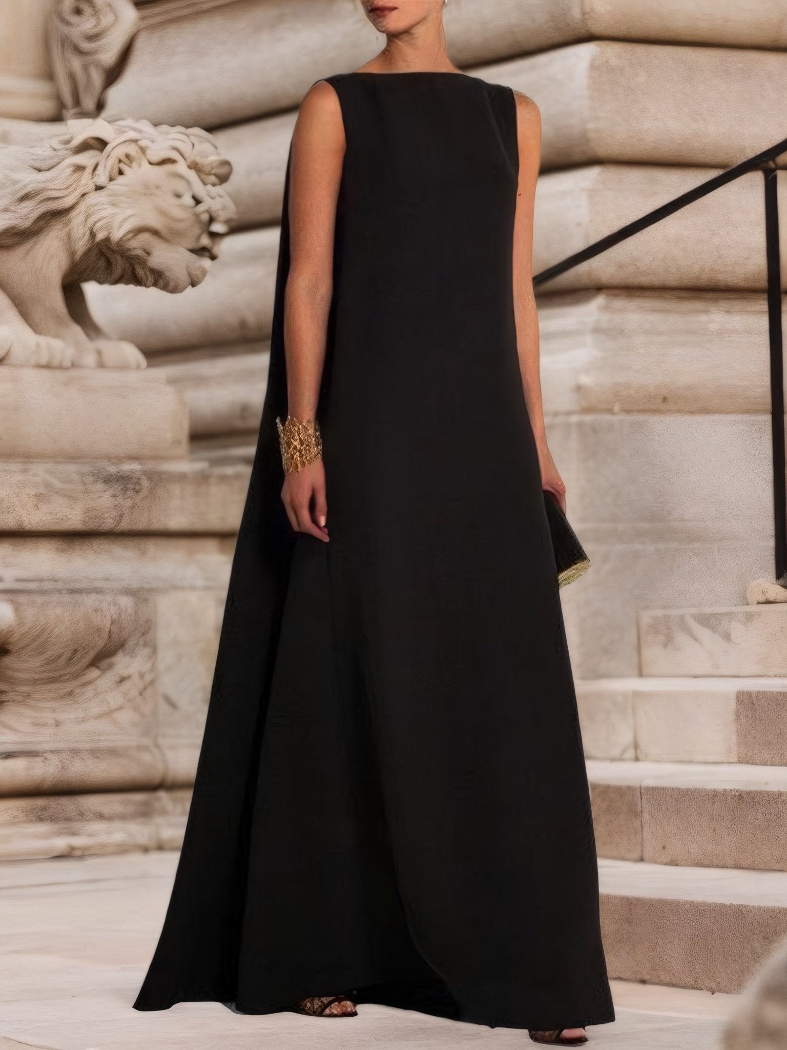 Elegant Sleeveless Crew Neck Plain Maxi Dress