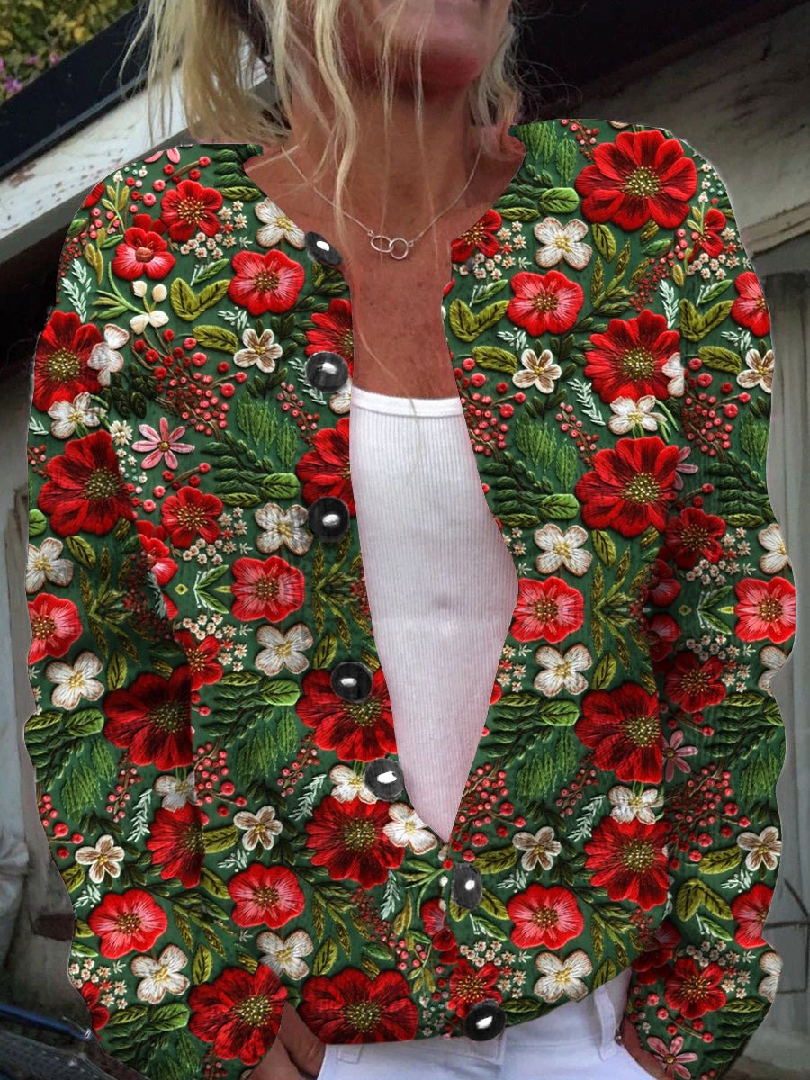 Loose Crew Neck Long Sleeve Floral Printing Ethnic Regular Cardigan