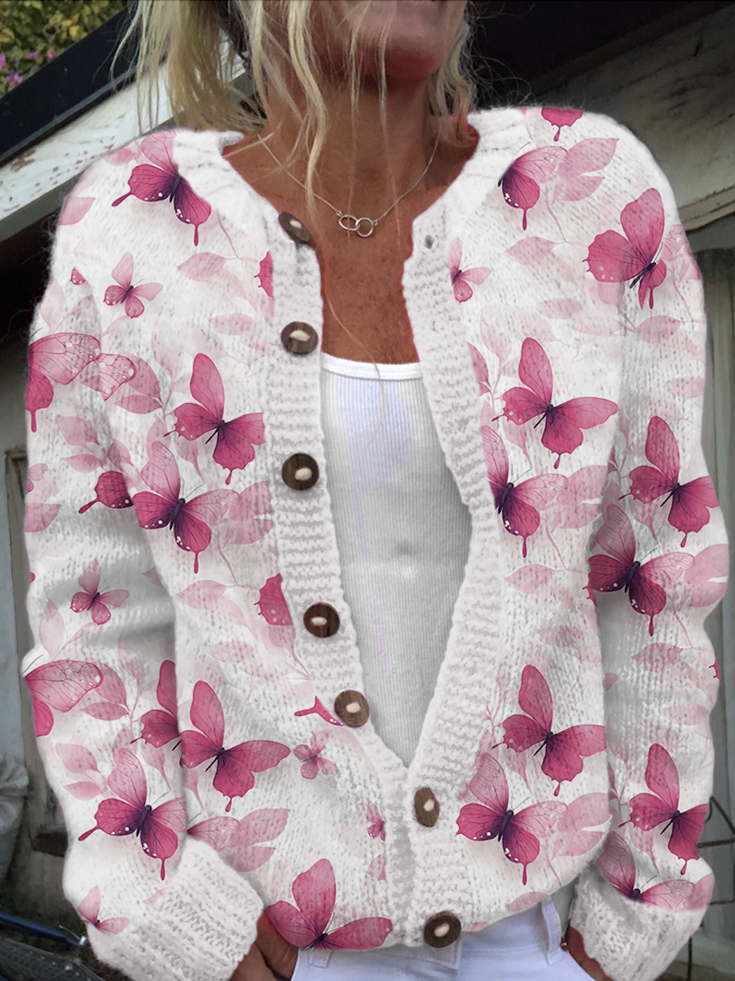 Loose Crew Neck Long Sleeve Maple Leaf Simple Regular Cardigan