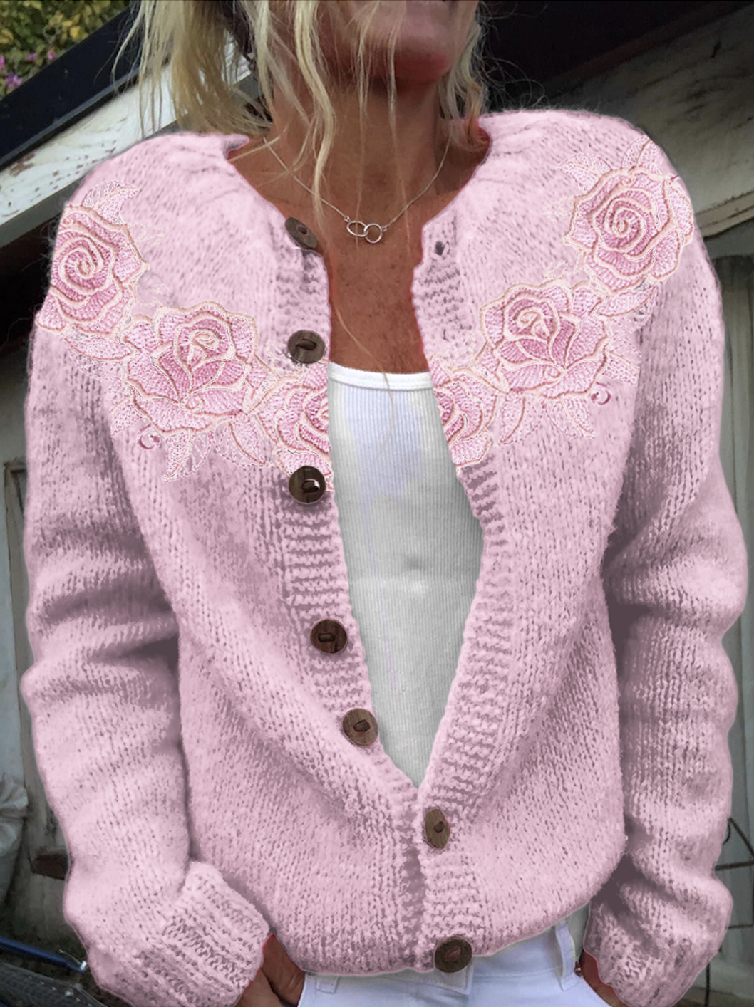 Loose Crew Neck Long Sleeve Maple Leaf Simple Regular Cardigan