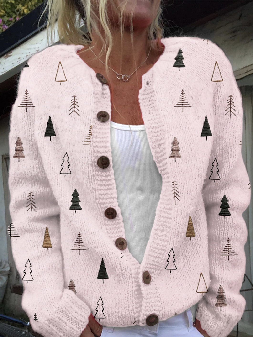 Loose Crew Neck Long Sleeve Maple Leaf Simple Regular Cardigan