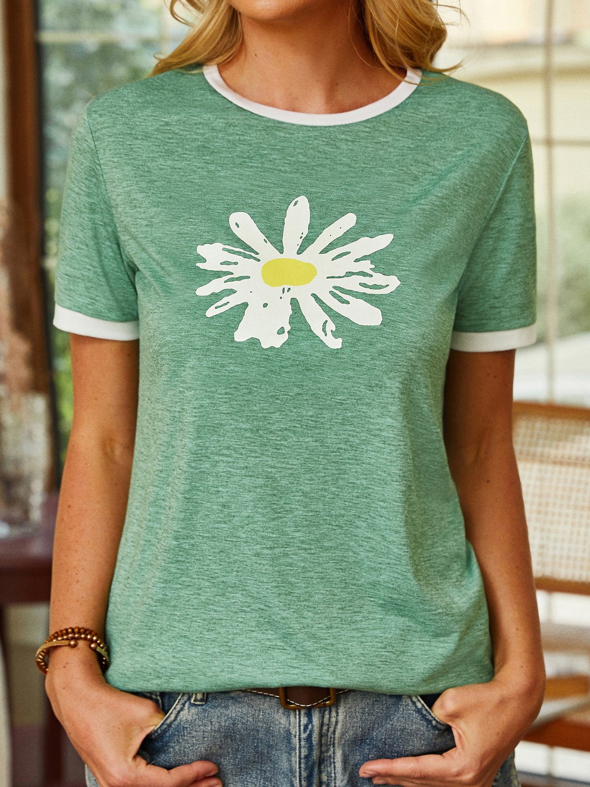 Loose Crew Neck Short Sleeve Floral Casual Regular T-Shirt