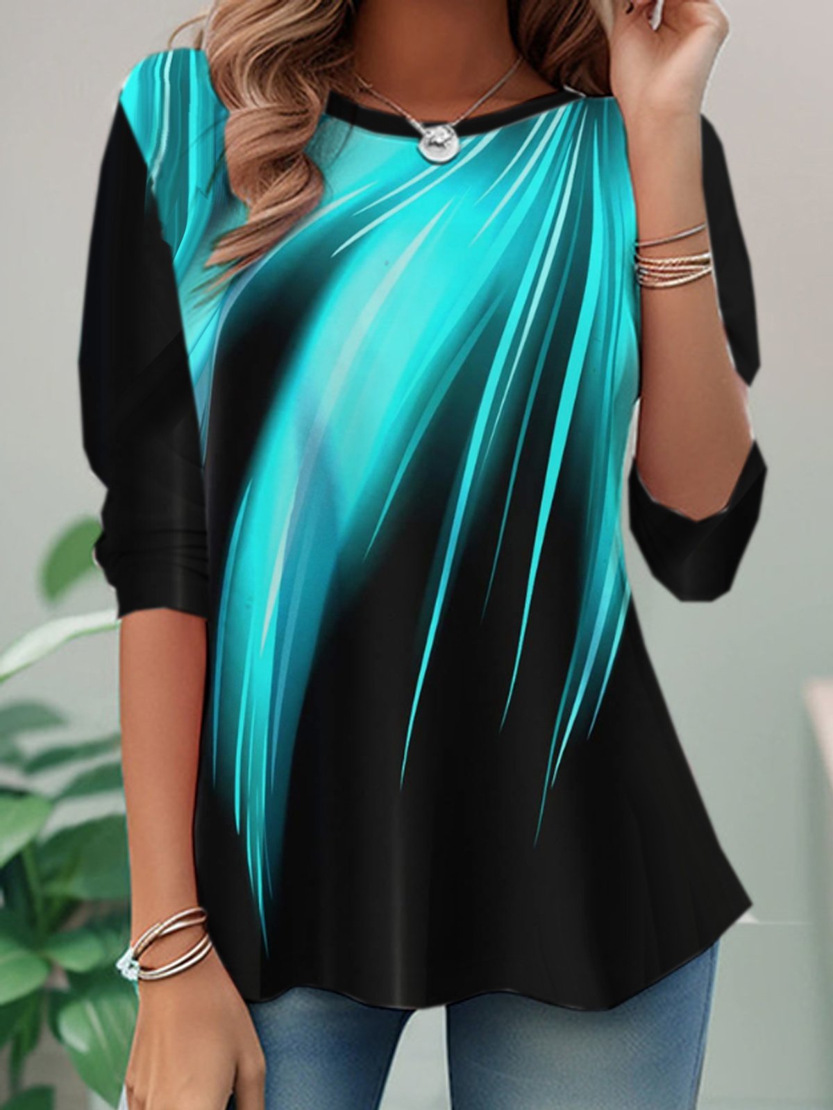 Loose Long Sleeve Crew Neck Abstract Casual Regular T-Shirt