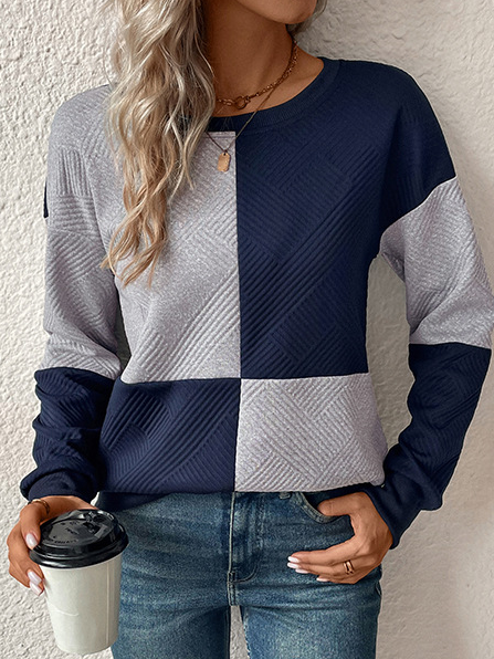Loose Long Sleeve Crew Neck Color Block Casual Regular Sweatshirt