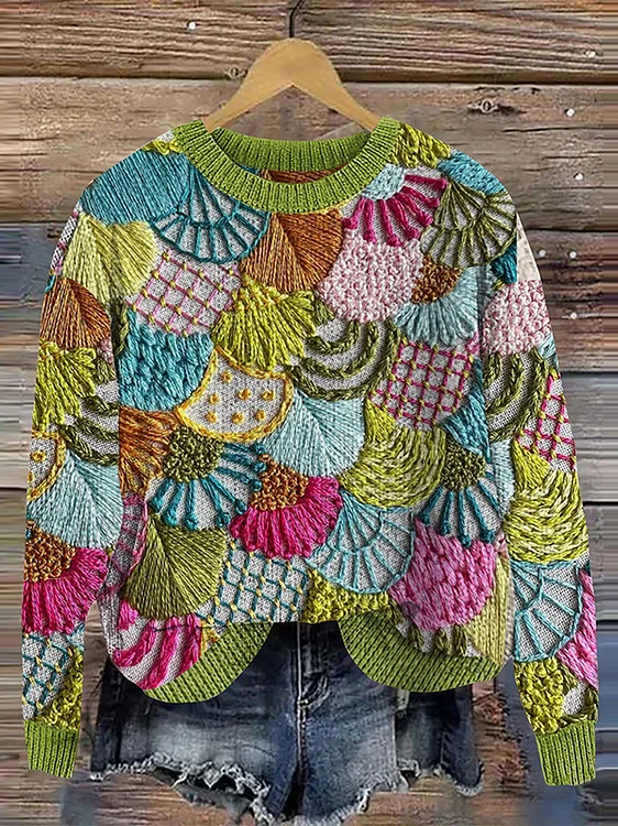 Loose Long Sleeve Crew Neck Geometric Casual Regular Sweatshirt