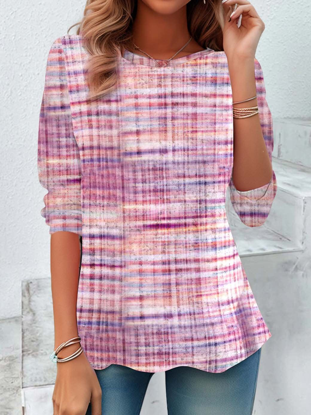 Loose Long Sleeve Crew Neck Geometric Vintage Regular Blouse
