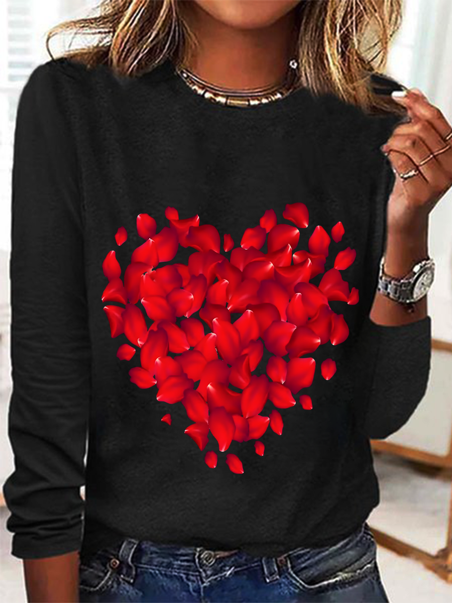 Loose Long Sleeve Crew Neck Valentine'S Day Casual Regular T-Shirt