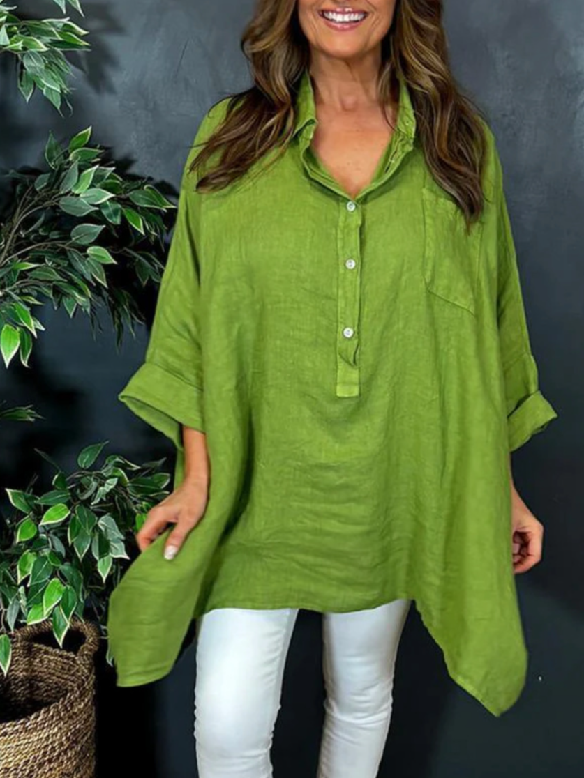 Loose Long Sleeve Shawl Collar Plain Casual Regular Blouse
