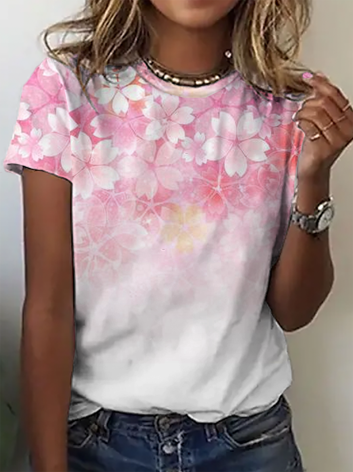 Loose Short Sleeve Crew Neck Floral Casual Regular T-Shirt
