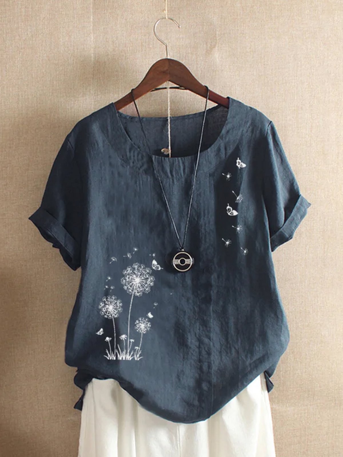 Loose Short Sleeve Crew Neck Printed Casual Regular T-Shirt