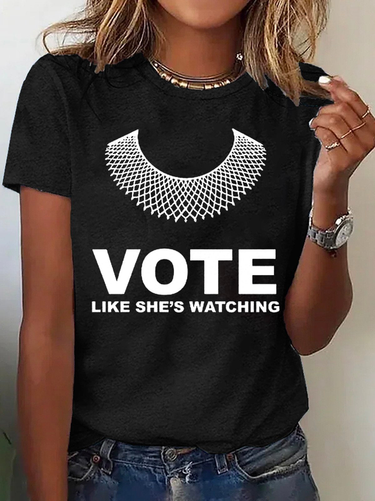 Loose Short Sleeve Crew Neck Text Letters Casual Regular T-Shirt