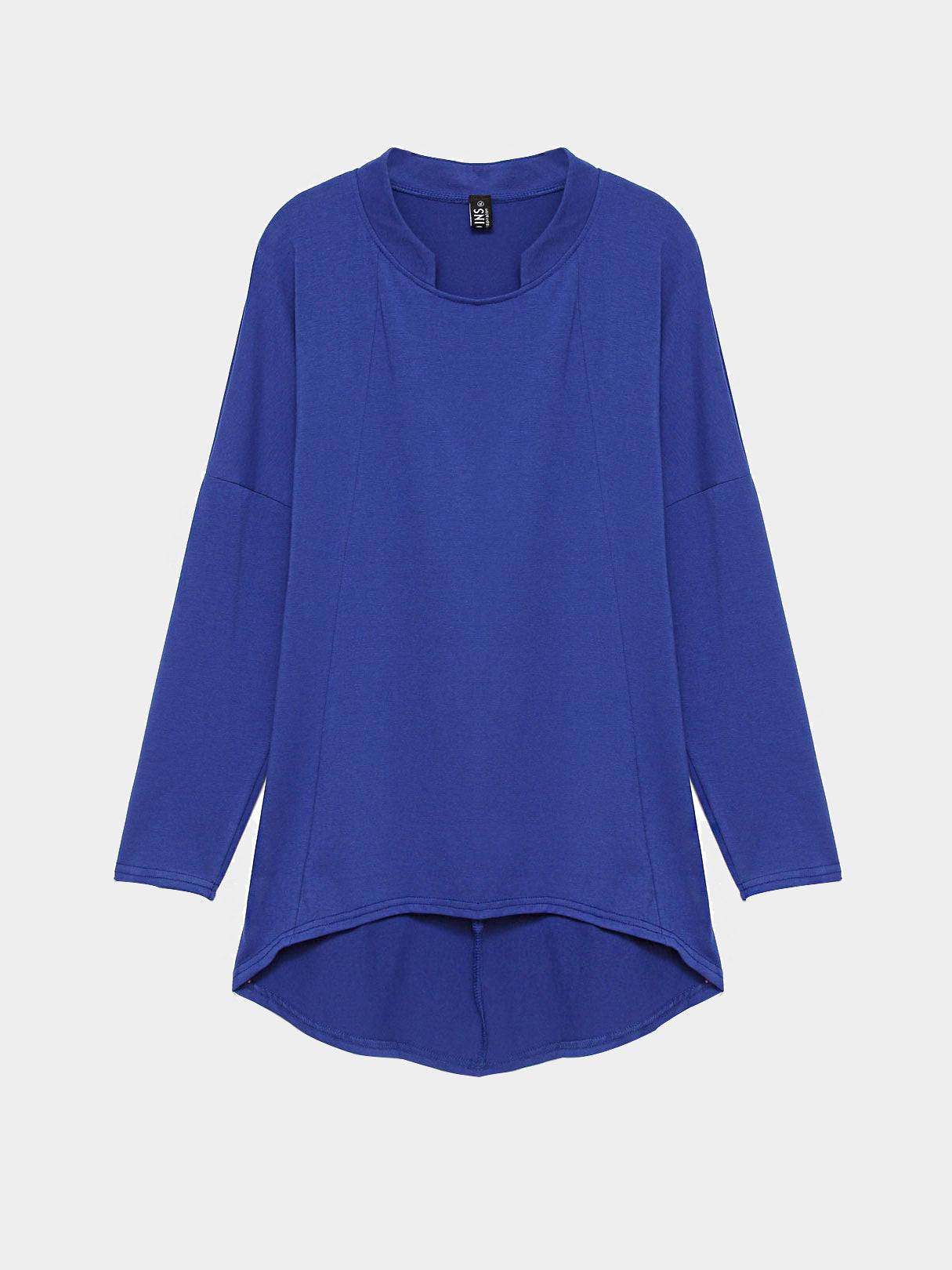 OEM ODM Long Sleeve Curved Hem Blue Plus Size Tops