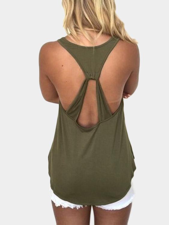 OEM ODM Round Neck Backless Sleeveless Army Green Tank Top