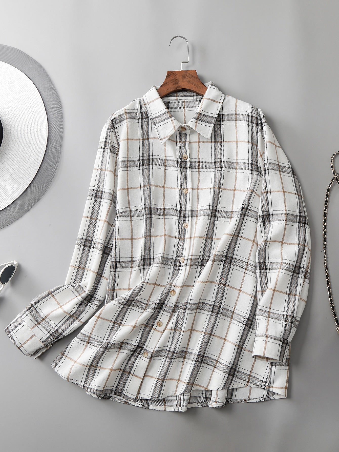 Plaid Button Front Long Sleeve Collar Regular Plus Size Blouse