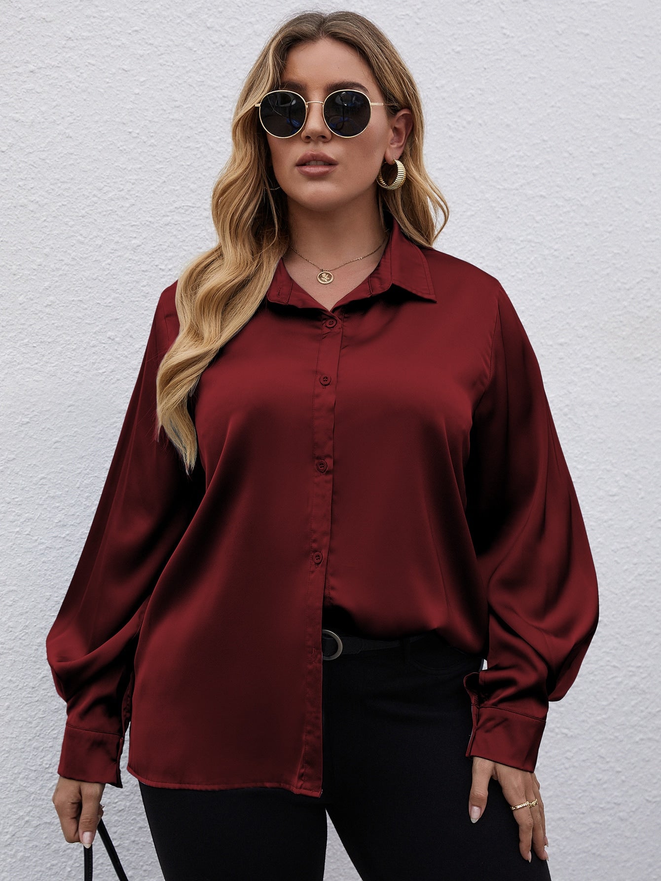 Plain Button Front Long Sleeve Collar Regular Plus Size Blouse