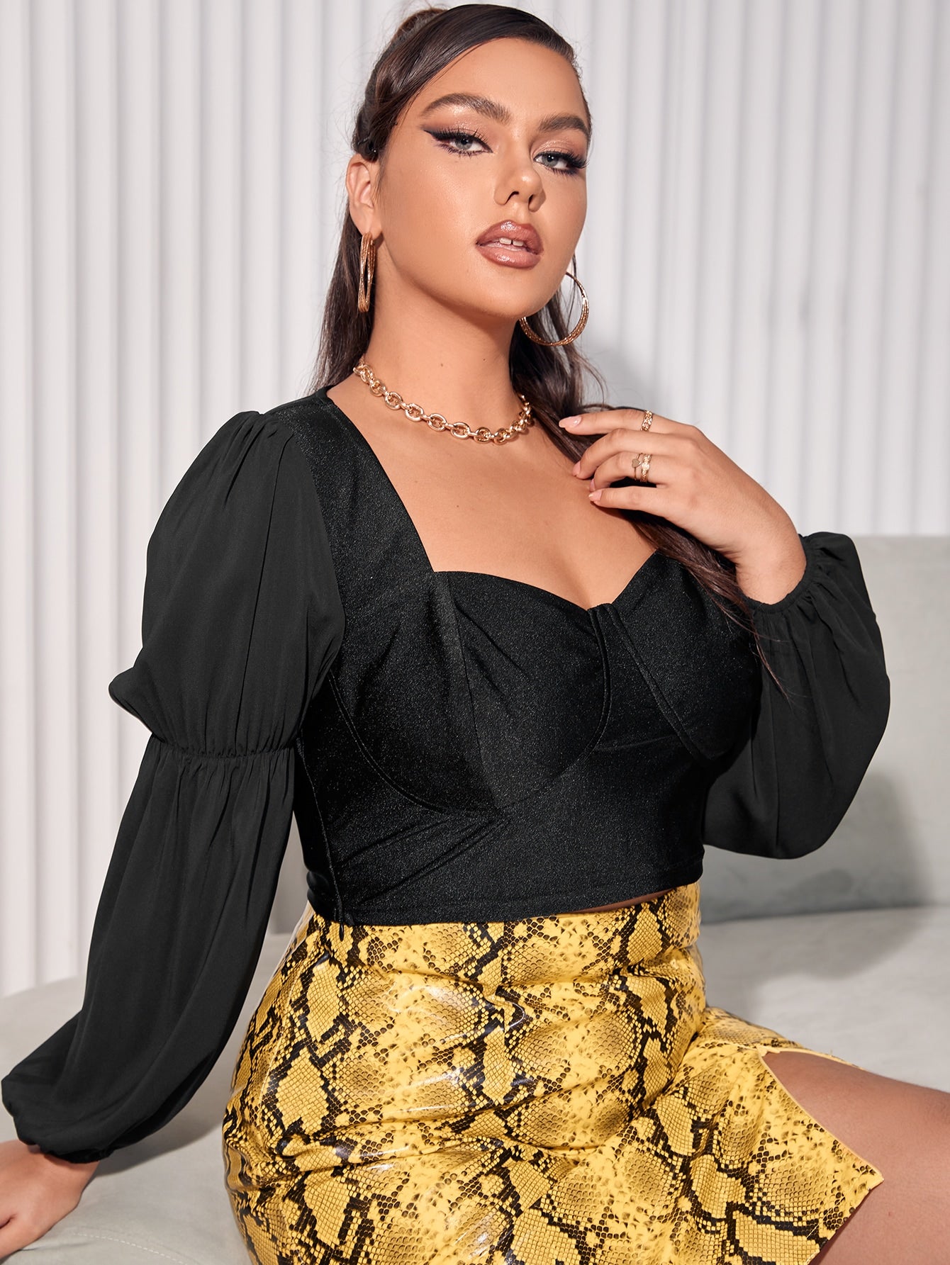 Plain Long Sleeve Sweetheart Crop Plus Size Blouse