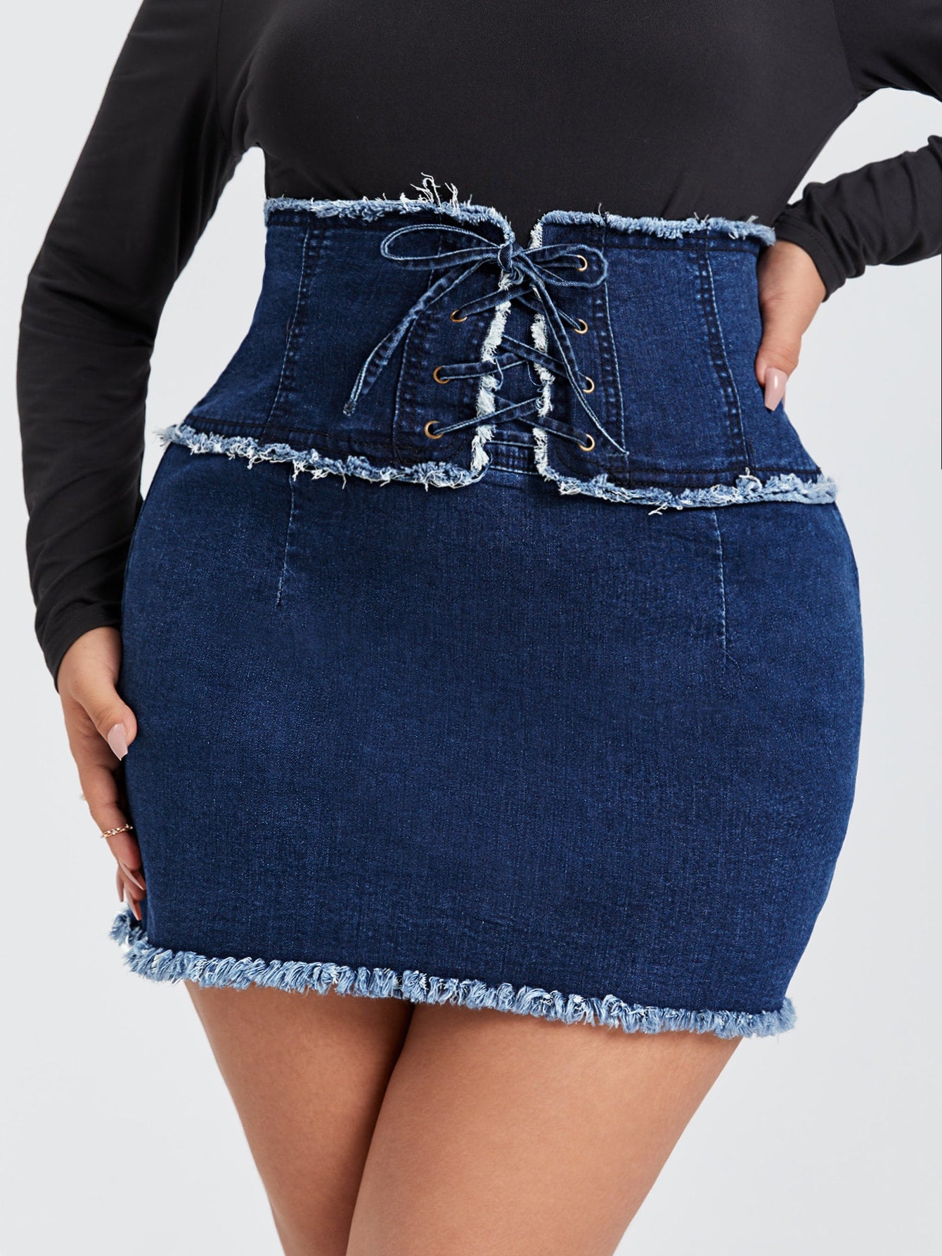 Plain Raw Hem High Waist Mini Plus Size Denim Skirt