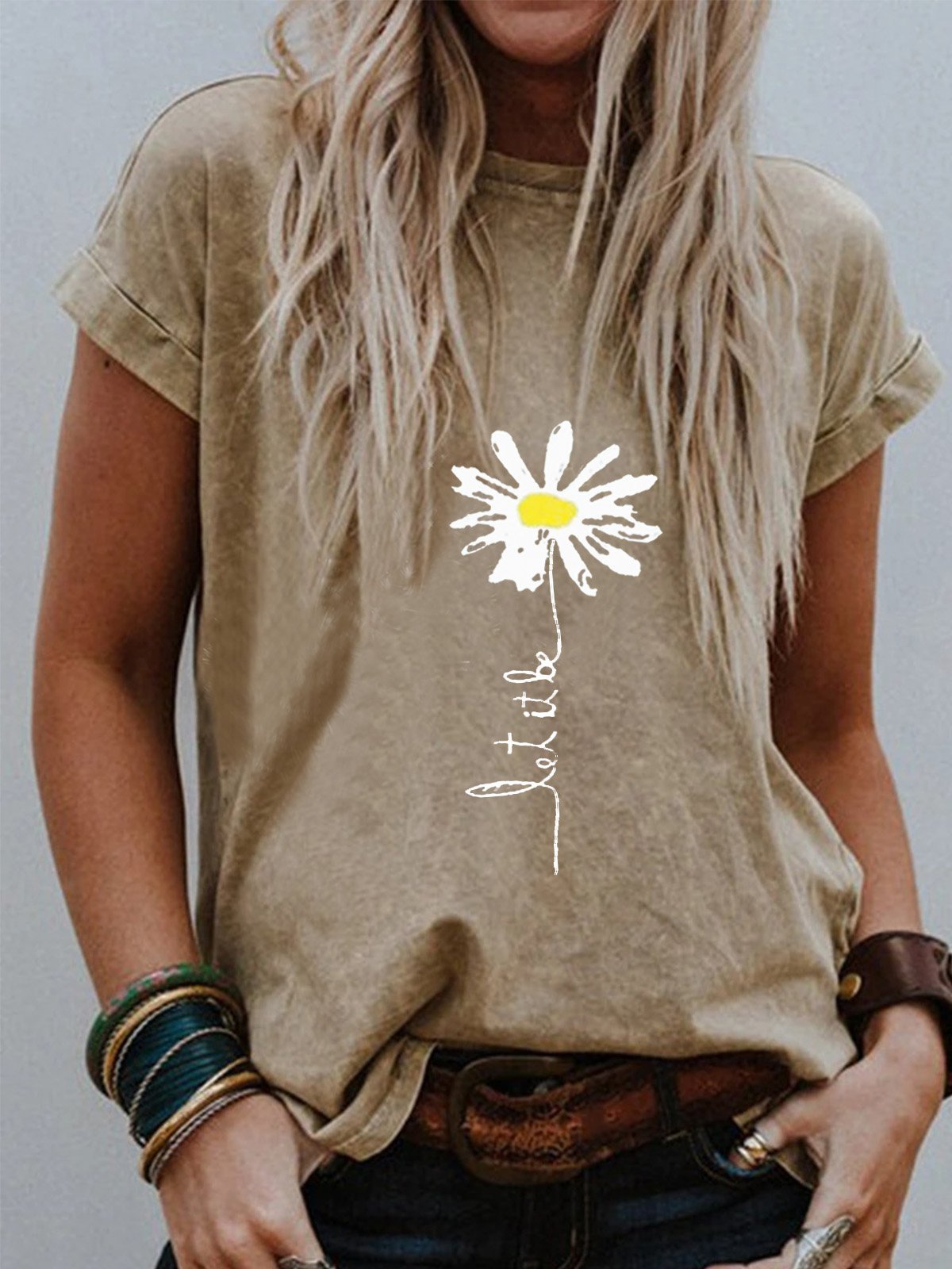 Short Sleeve Crew Neck Printed Floral Casual Regular T-Shirt