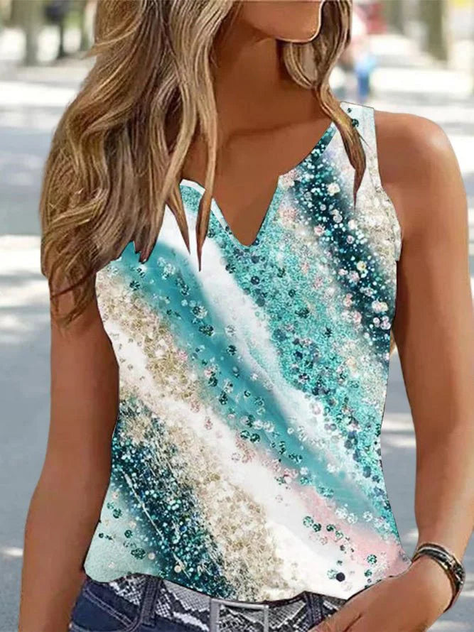 Sleeveless Notched Gradient Pattern Casual Regular Tank Top
