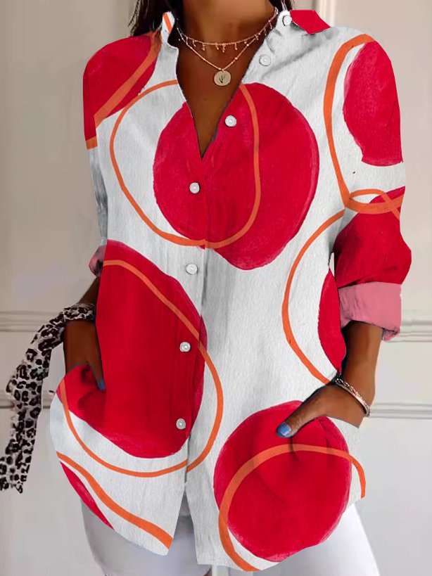 Three Quarter Sleeve Shirt Collar Geometric Casual Regular Shirt