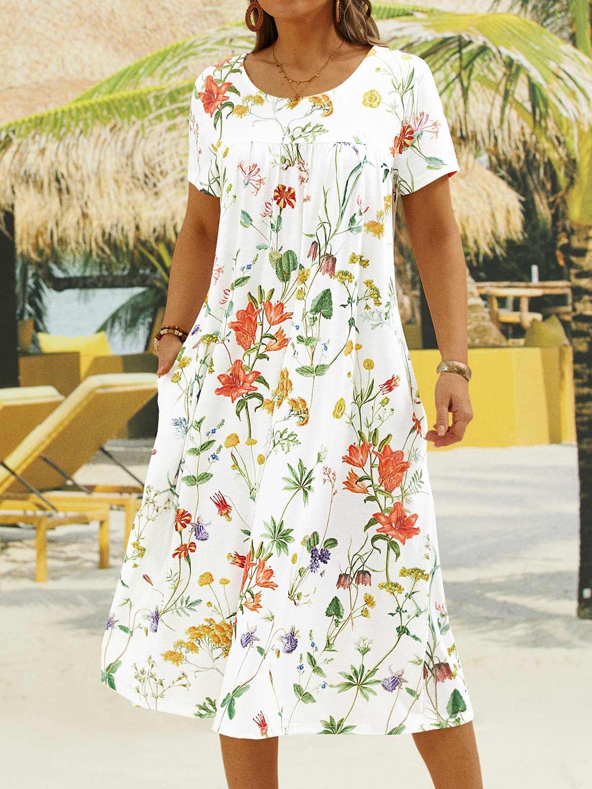 Vacation Short Sleeve Crew Neck Disty Floral Loose Maxi Dress