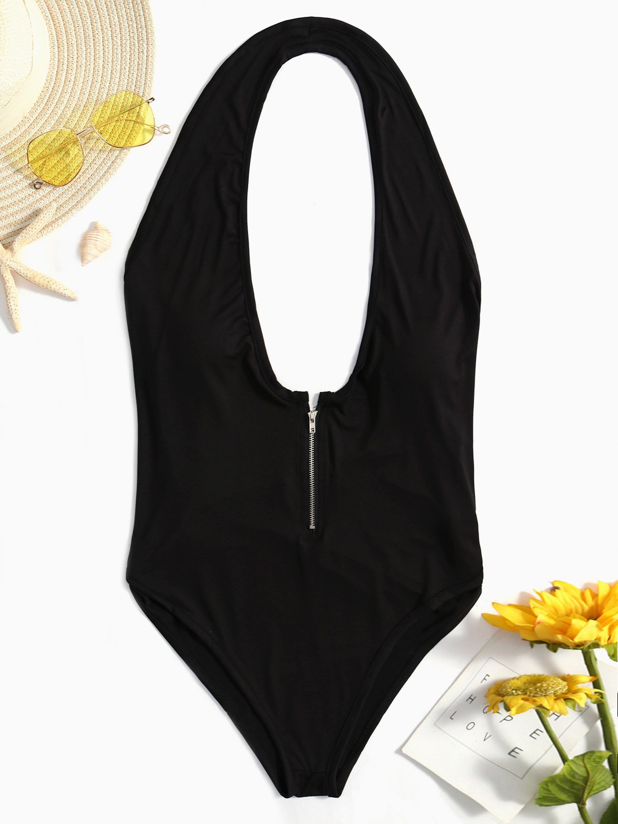 Wholesale Black Deep V Neck Sleeveless Zip Back One-Pieces Swimsuits