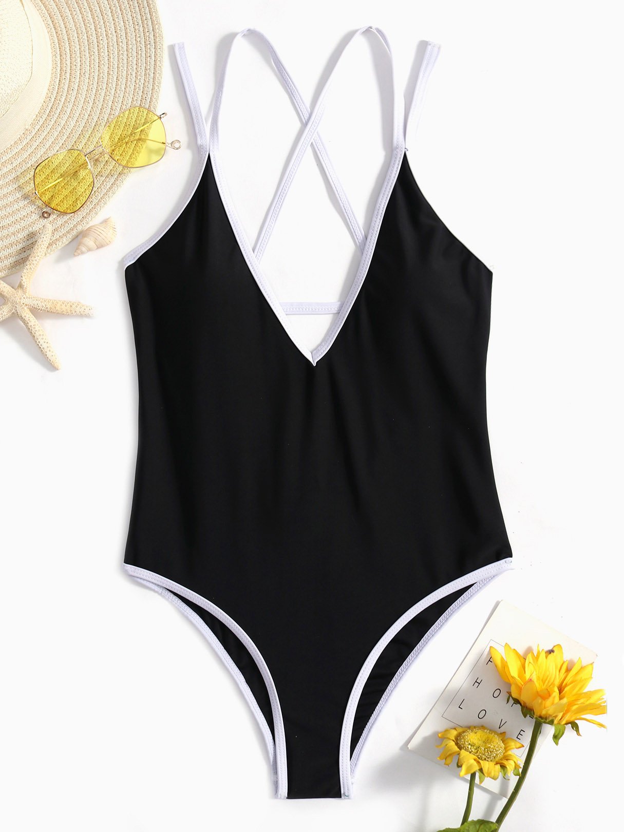 Wholesale Black V-Neck Sleeveless Backless Lace-Up High-Waisted One-Pieces