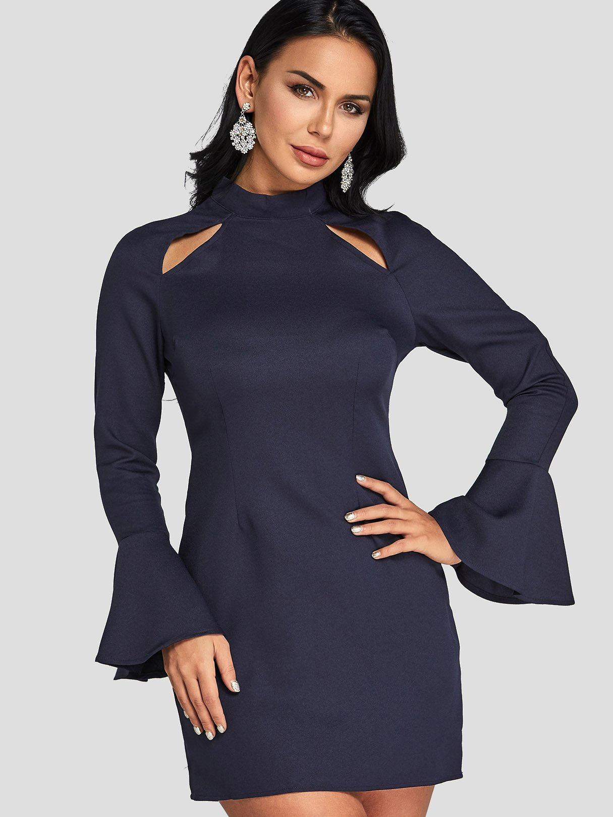 Wholesale Navy Long Sleeve Plain Cut Out Mini Dress
