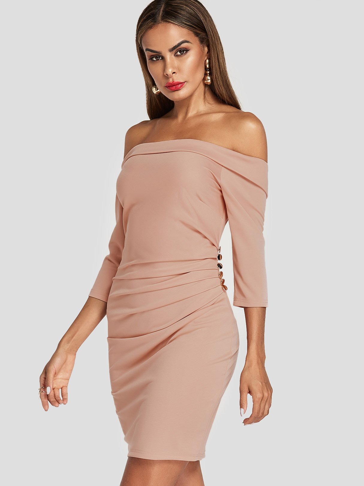Wholesale Off The Shoulder 3/4 Sleeve Length Backless Bodycon Dresses