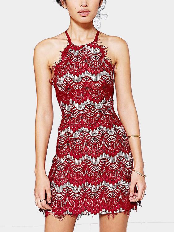 Wholesale Sexy Backless Bodycon Halter Red Lace Dresses