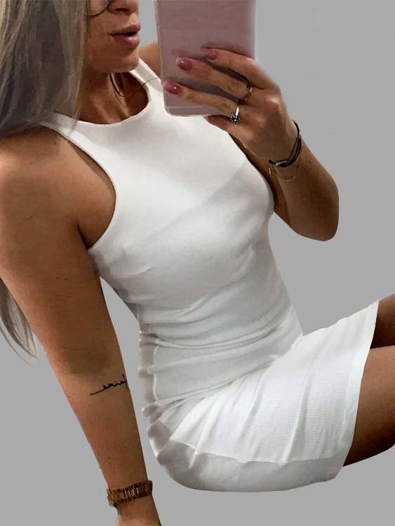 Wholesale White Crew Neck Sleeveless Bodycon Hem Dresses
